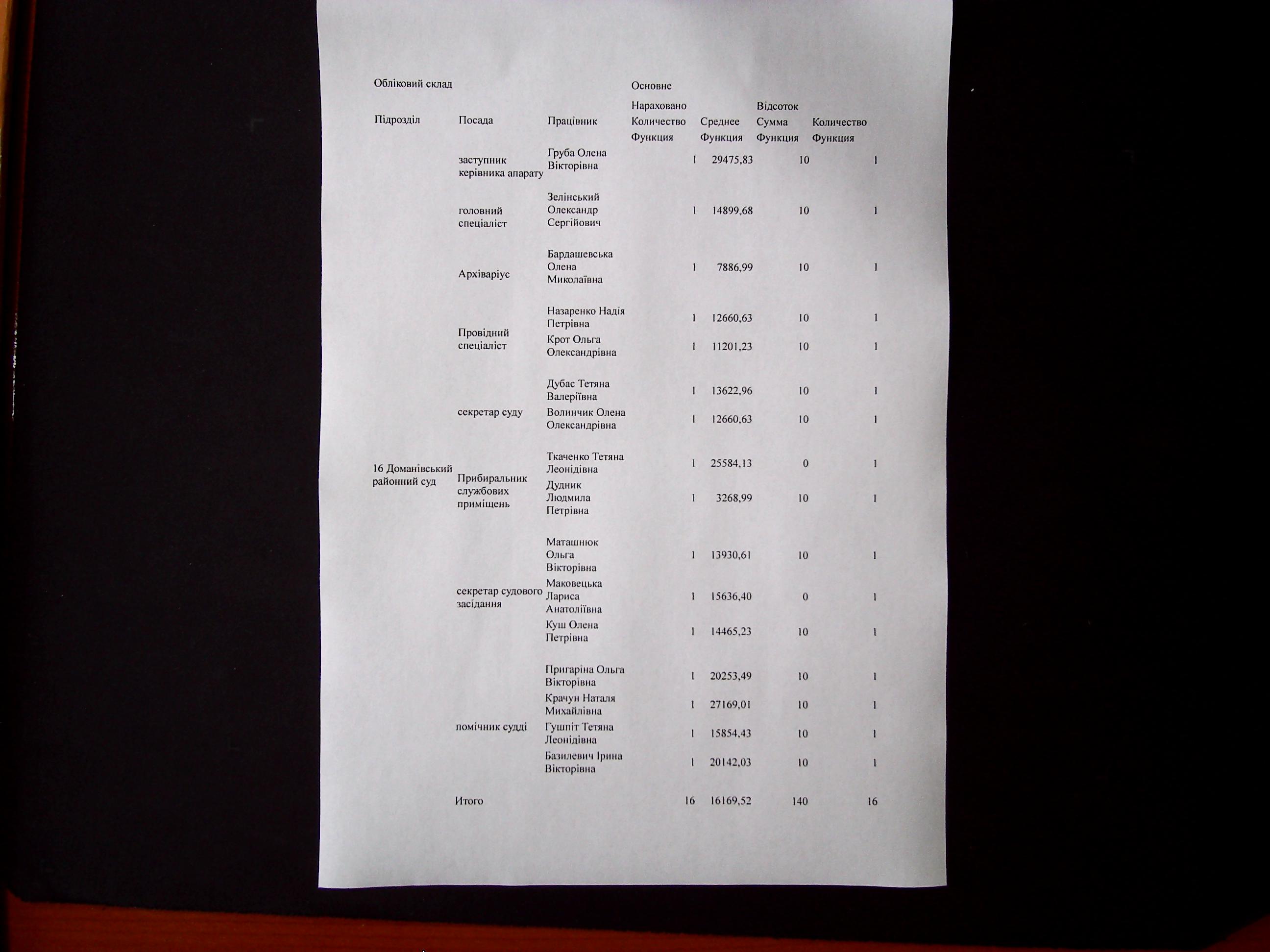 інформація про середній розмір заробітної плати та стимулюючих виплат працівників апарату суду